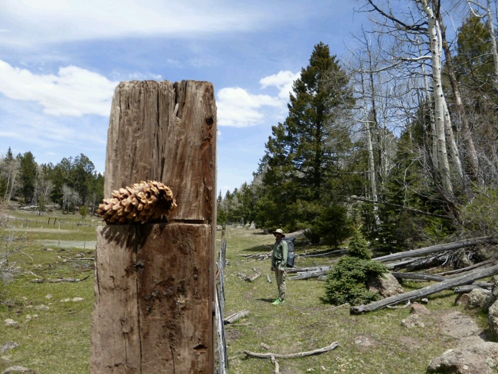 On this day I did stop after we got water at American Spring to watch a metallic emerald green hummingbird fly and flit about some currants that were just starting a flower amid a small grove of aspen. It was lovely to see one of the little hummers that buzz about us so often.