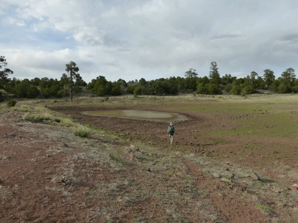 Grab two liters of silty, smelly, poor excuse for water from a trodden, shallow cattle tank. Hope you don’t have to drink it. Hike on three plus miles.