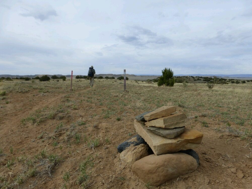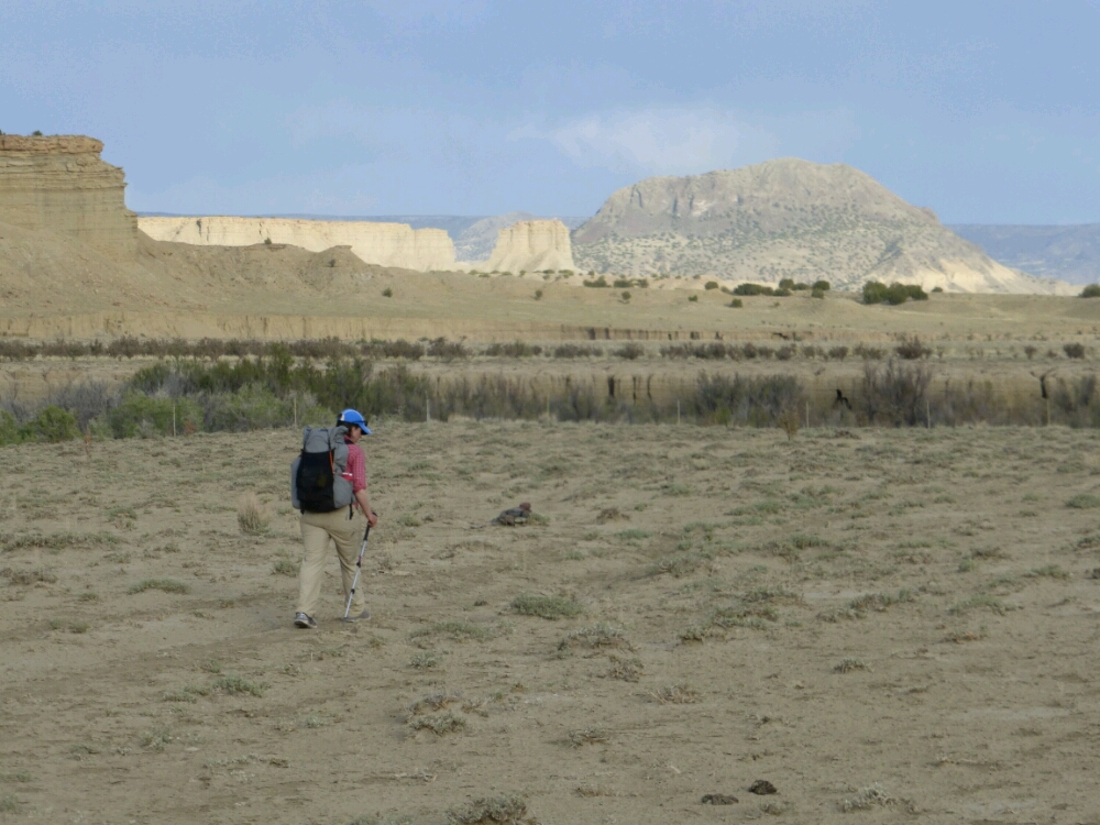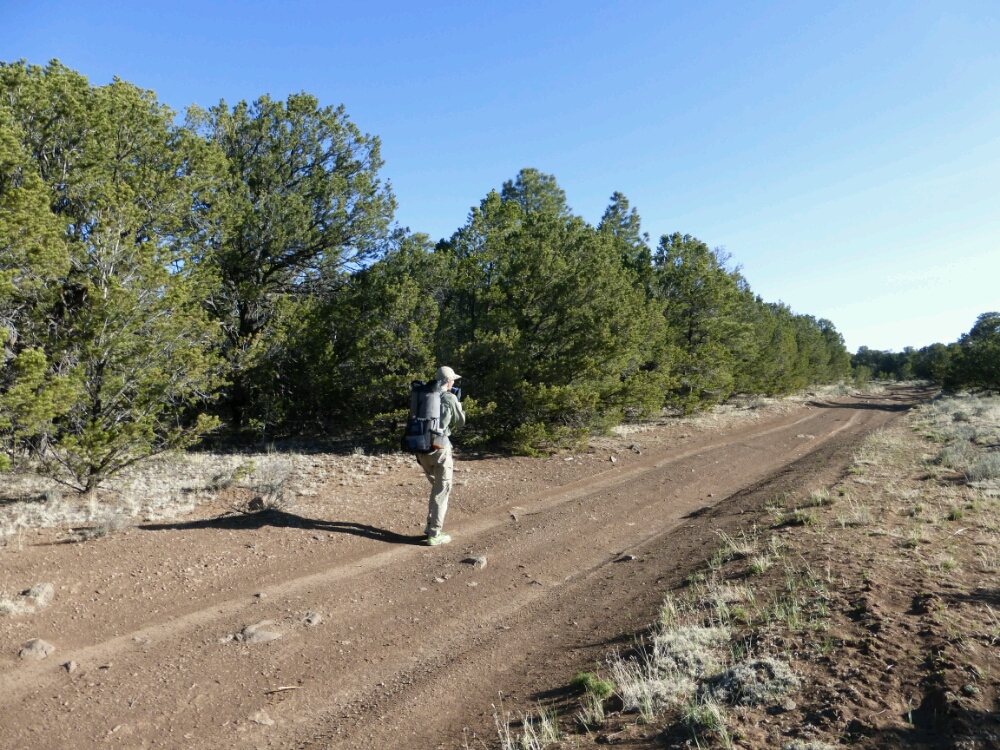 A warm morning and we are back to road walking amid sagebrush lands and pinyon woodlands. The sun illuminates bunch grasses. Jackrabbits scurry across our path and bound from shrub to road to tree to arroyo. The walking is deceptively easy.