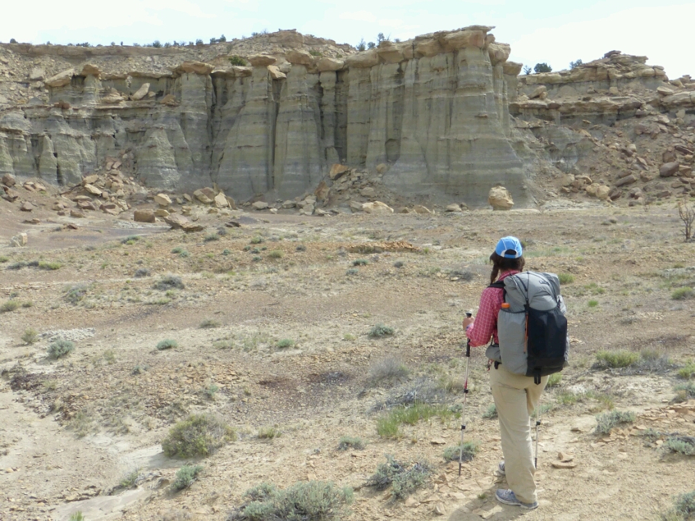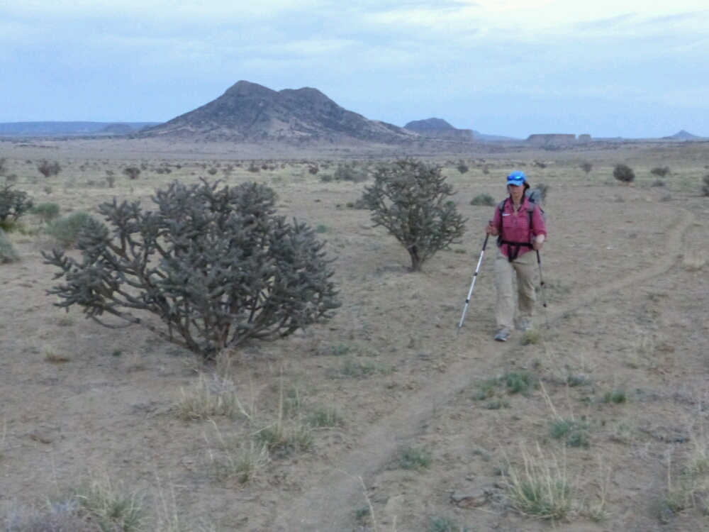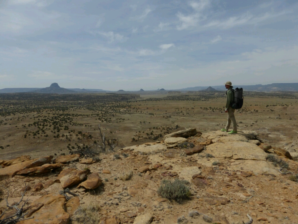 Breakfast was in the shade of a juniper on the edge of a mesa looking out to El Cabezon and the highlands we’d hiked down yesterday.