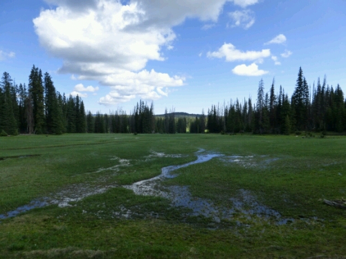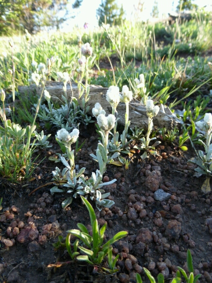 Hiking into Huston Park was a welcomed surprise: high subalpine meadows amid red rock gardens. The snow just melting out on some slopes and deep in flower elsewhere. Ridges a bloom with purple lupine, red paintbrush, penstemon, alpine pussytoes, cinquefoil, showy daisies, and sandwort. Wet meadows of glacier lily, alpine buttercup, bog saxifrage, lousewort, white bog orchid, and marsh marigold. Spruce (mostly alive!), subalpine fir, a few lodgepole, and limber pine.