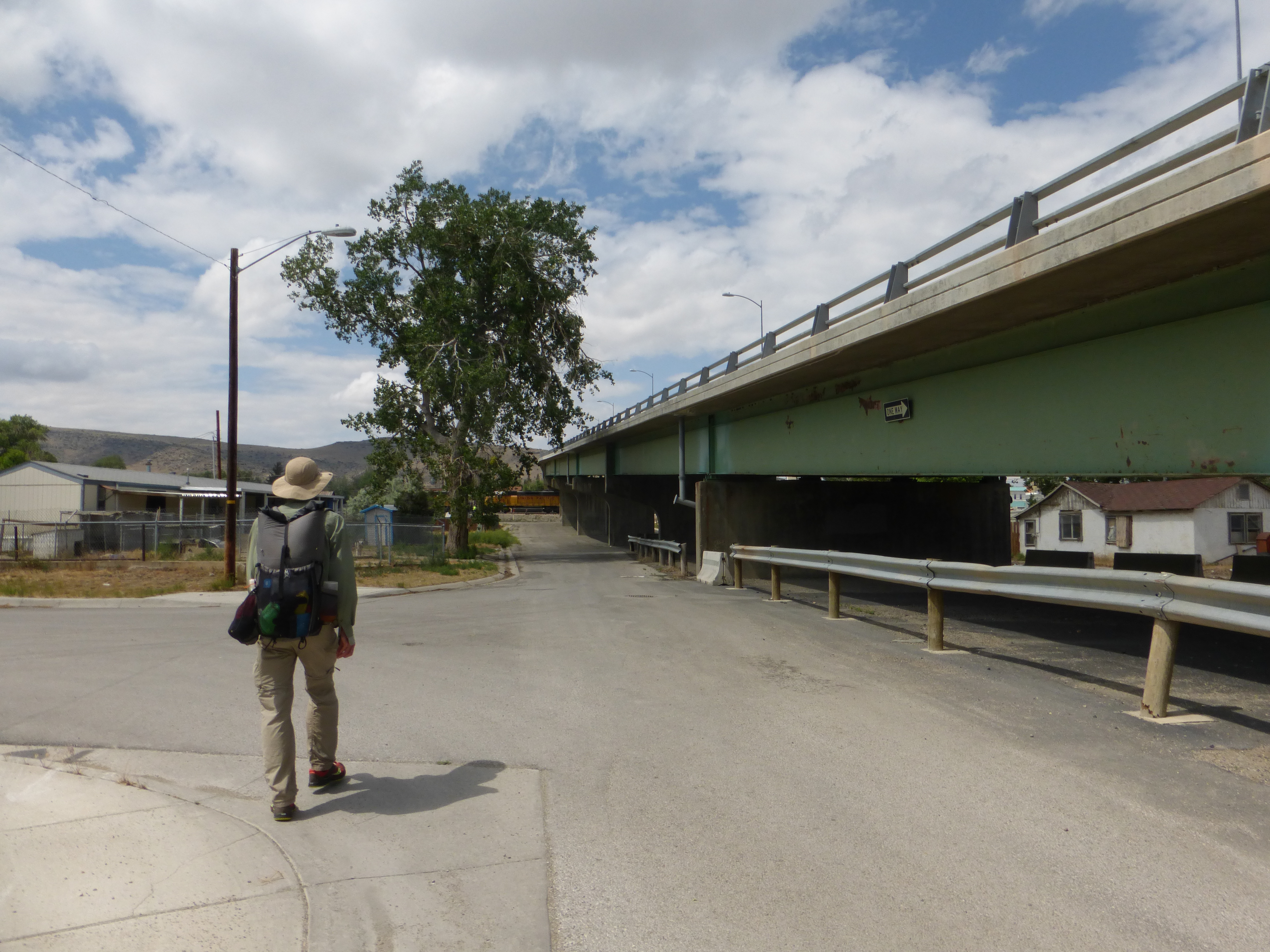 Much road walking ensued when we entered a BLM checkerboard of public and private lands. Here we are near a stage stop on the Emigrant Trail. If Gabriel's pack looks heavy it's because we are each carrying 6 liters of water (~12 pounds) to get through a 30-mile alkaline water section.)
