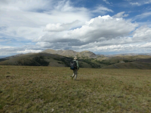 From Lima to Leadore the trail stays close to the Divide. Following the ridges as they roll. Steeply. Gently. A sinusoidal walk that keeps us up high overlooking the steep valleys to the west and sagebrush and desert to the east. It is beautiful walking. Cloud admiring. Grass admiring. Eyes peered for bighorn sheep on the mountains just west of the Divide.