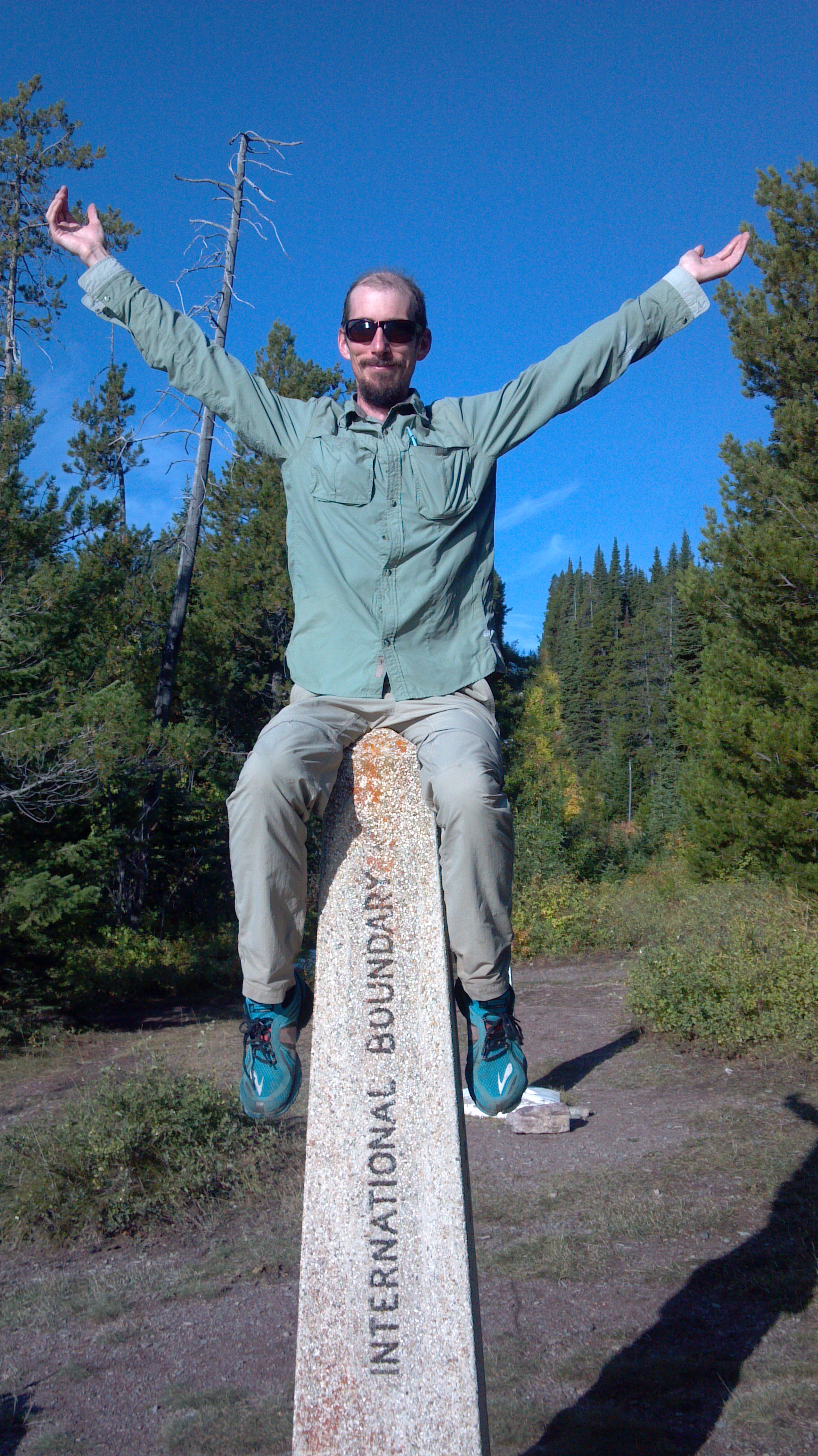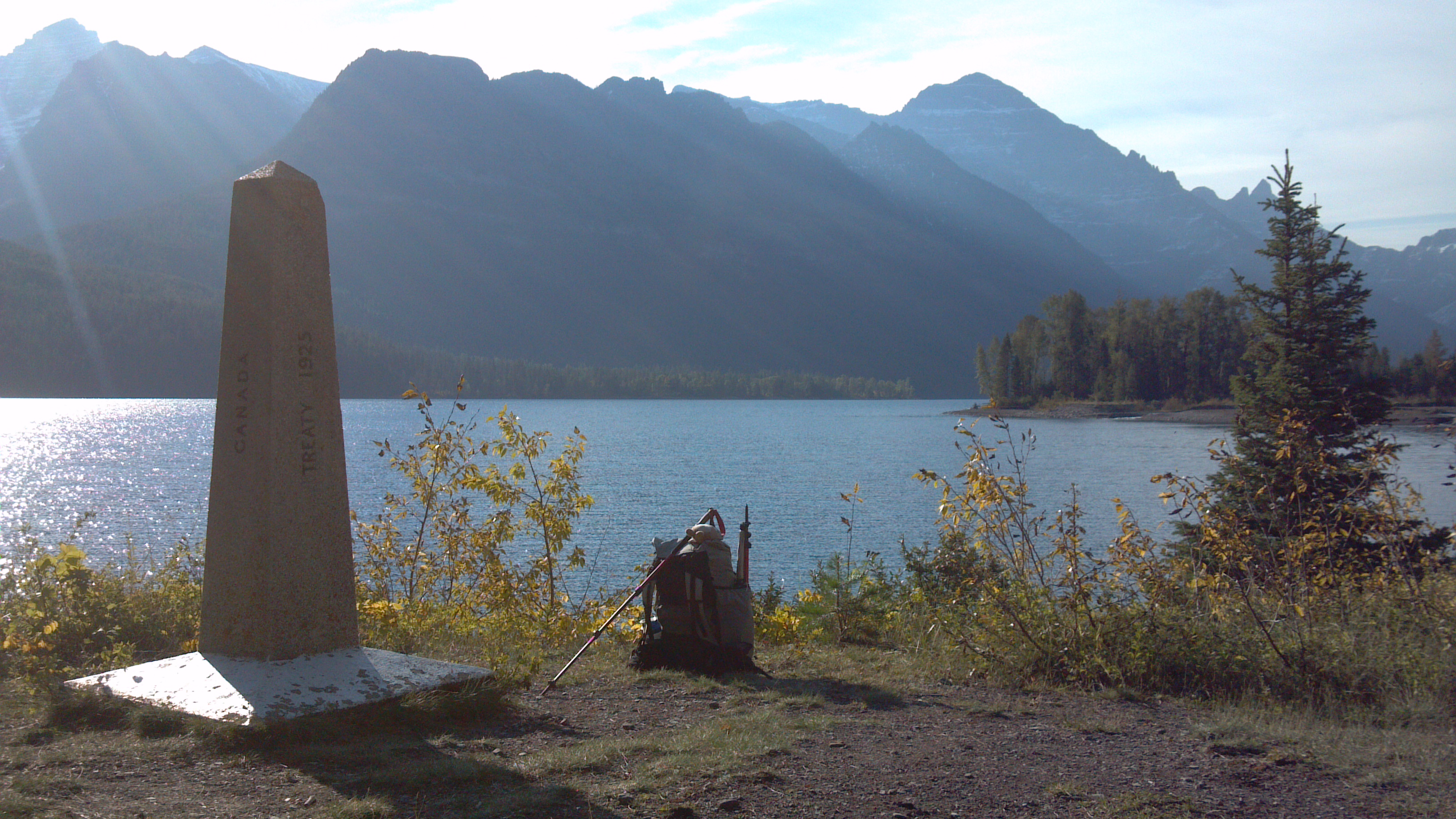 Most days, hiking a long distance trail is not about the monuments on either end of the border. But this morning, upon reaching the shore of Upper Waterton Lake and seeing the four foot stone pillar noting the 49th parallel, reaching the monument has bearing. We’ve completed the physical part of our journey along the Continental Divide Trail, having linked our steps from Mexico to Canada. Mostly on trail, always on route.
