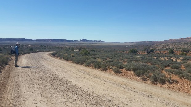 Day 1: 14 miles from north end of Arches NP, Salt Valley Road to BLM land west of park about mile north of Willow Spring.