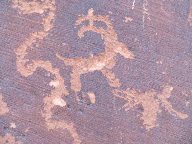 Bighorn sheep petroglyph in Moonflower Canyon along the side of Kane Creek Road. A surprising perk of the busy road!