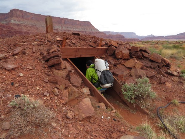 Gabriel checking out the mine below Hatch Point Mesa.