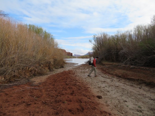First from the tamarisk-thick banks of the Colorado. Later from potholes in the sandstone. Each source requiring different skills. For the Colorado water, we follow the hoof prints and dung of cattle and their well trodden path to the river. (We of course filter our water, then chemically treat it. A Sawyer Squeeze-Aquamiria cocktail.)