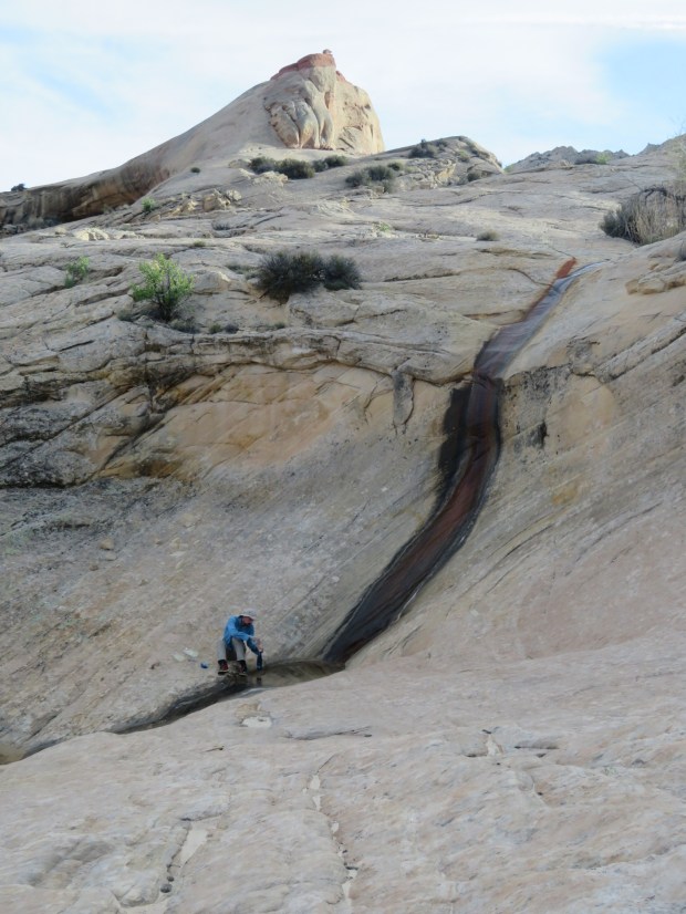 Mukmuk liked the little pockets in the side of the slickrock.