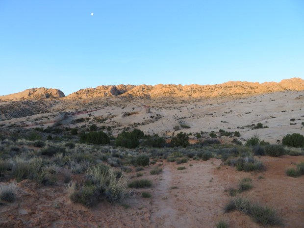 In the early morning we pack up and watch the walls of Hall Creek Mesa emerge from the dusk and change color. Black, to gray, to, dull brown, to a faded brown red.