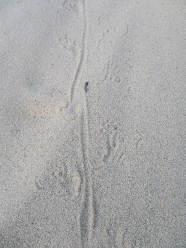 Kangaroo rat tracks are abundant in the sand.