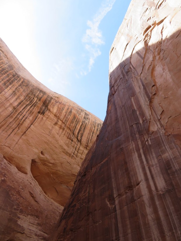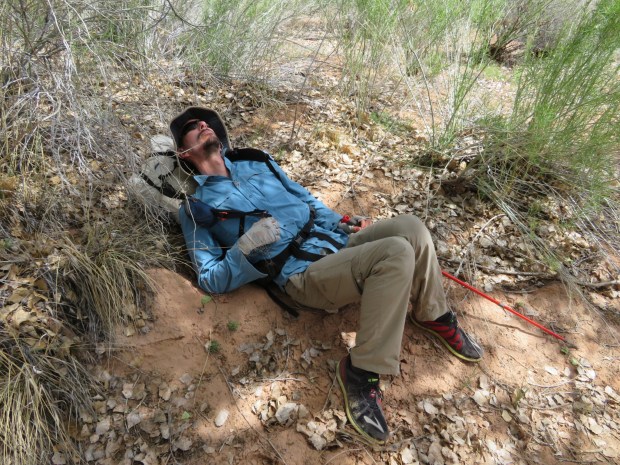 But after yesterday’s splendor in Muley Twist Canyon, the wash isn’t standing out. I liken it to a kid coming off the endorphin rush of Disney World. The day after spent at the hotel swimming pool. Normally the pool would be awesome, but after Disney World… everything is relative.