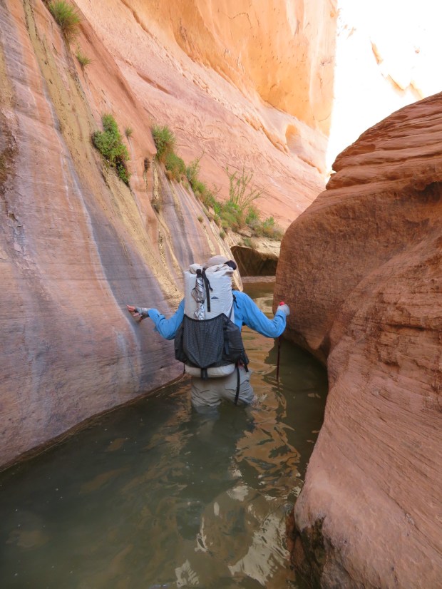 Our first water and narrow slot experience. It was up to my lower hips.