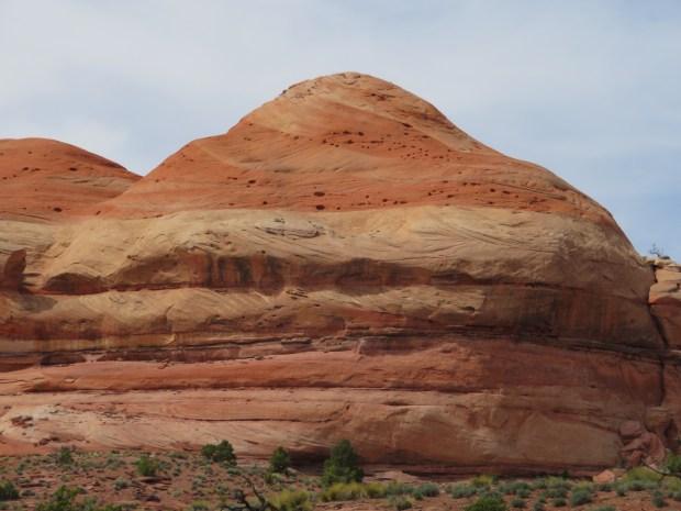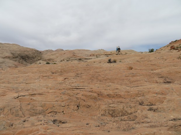 From the top of the Fold we looked east to the Henry Mountains and our route across Tarantula Mesa to Capitol Reef NP. We also saw the Colorado River a la Lake Powell (or is that Lake Foul?) glimmering with boats. So many worlds all from one vantage point.