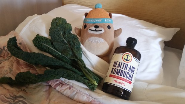 Mukmuk is enjoying the kale and kombucha from Escalante Mercantile.