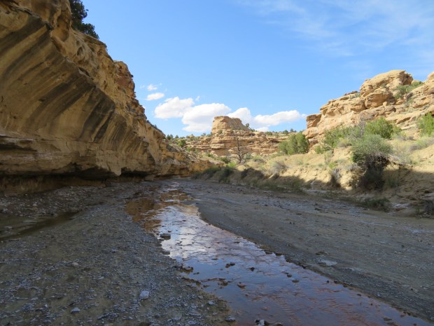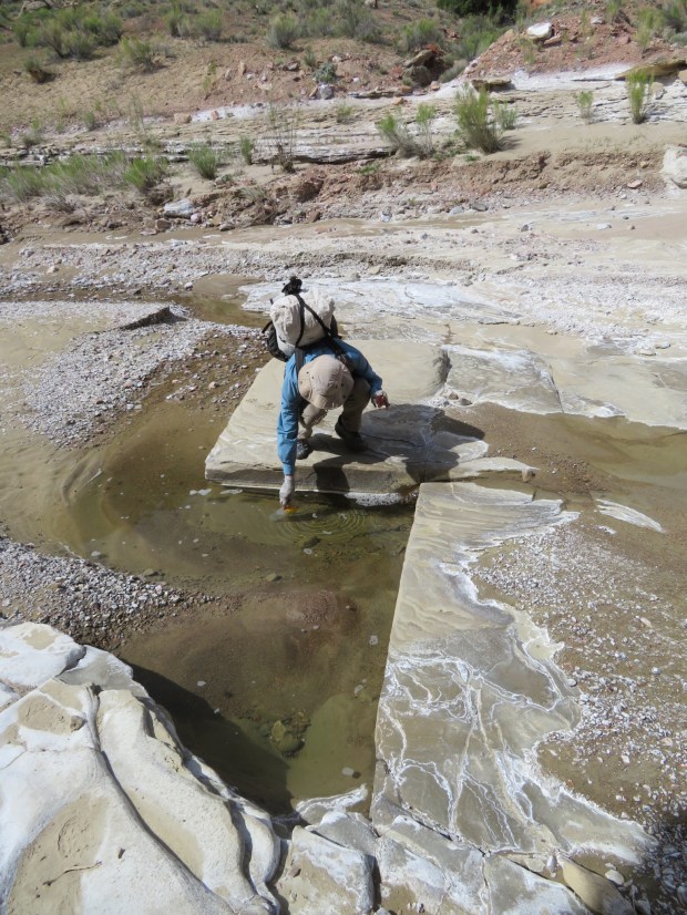 Then up the red canyon of Last Chance Creek. Flowing water, less alkaline than the waters of Rogers Canyon, but still alkaline. Since we didn’t have any other options we drank from the creek (always treating of course), no reasonable way to avoid alkaline water. Just grateful to have water. Drink it like you mean it.