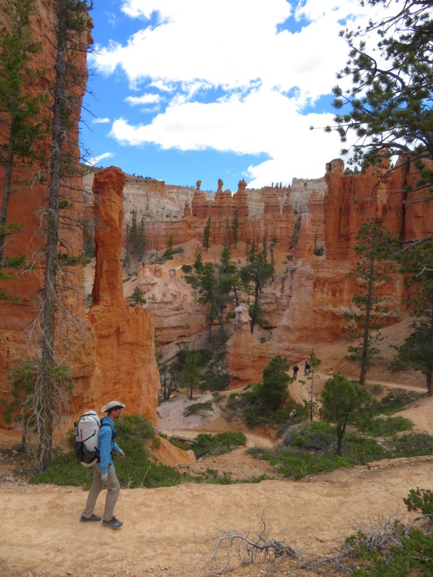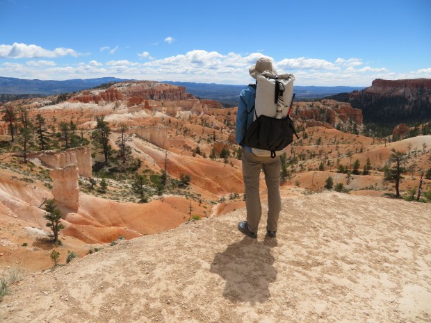 We hiked up to the rim and walked the paved path down to the visitor center for our backcountry permit. At first the very knowledgeable volunteer at the front desk started to go into a spiel about the day hiking trails being where the hoodoos are and how we wouldn’t want to hike the Under the Rim Trail because that’s not where the hoodoos are.