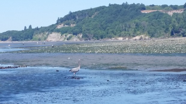 A great blue heron foraging in the eelgrass beds below the bluff at Discovery Park. It also caught a fish!