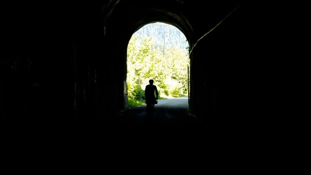 The 2+ mile tunnel is a popular hike or cycling destination, especially on a hot summer day. We had figured there would be maybe a handful of people here on a weekday. But we encountered well over 200 folks. On a Tuesday. Groups of all ages with flash lights and glow sticks enjoying the experience of walking through the chilly, oh-so-dark, echo-y tunnel that goes under Snoqualmie Pass.