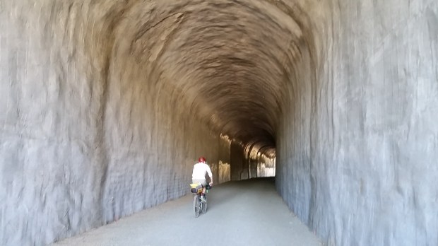 Alongside the trail, we rolled by hardhack spirea, fireweed and oceanspray thickets, Oregon white oaks, pin cherries, and Rocky Mountain maples. We watched cliff swallows dance along the andesite walls and outside the old train tunnels. Above us in the crisp blue sky bald eagles soared. One even flew above us with a snake in its talons and a redtail hawk and juvenile eagle giving it chase.