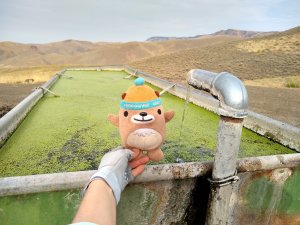 Mukmuk and the duckweed-covered trough with the best water on the ODT.