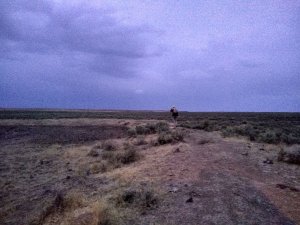We got up an hour earlier than we have been to ensure we’d make it to the next reliable water source. Headlamp walking the first half hour with jackrabbits hopping about. Around dawn overcast skies hardly revealed the sunrise.