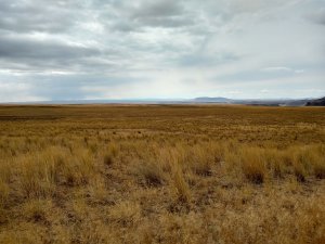 A sea of sagebrush green and cloudy muted blue skies. Rothko-like horizon.