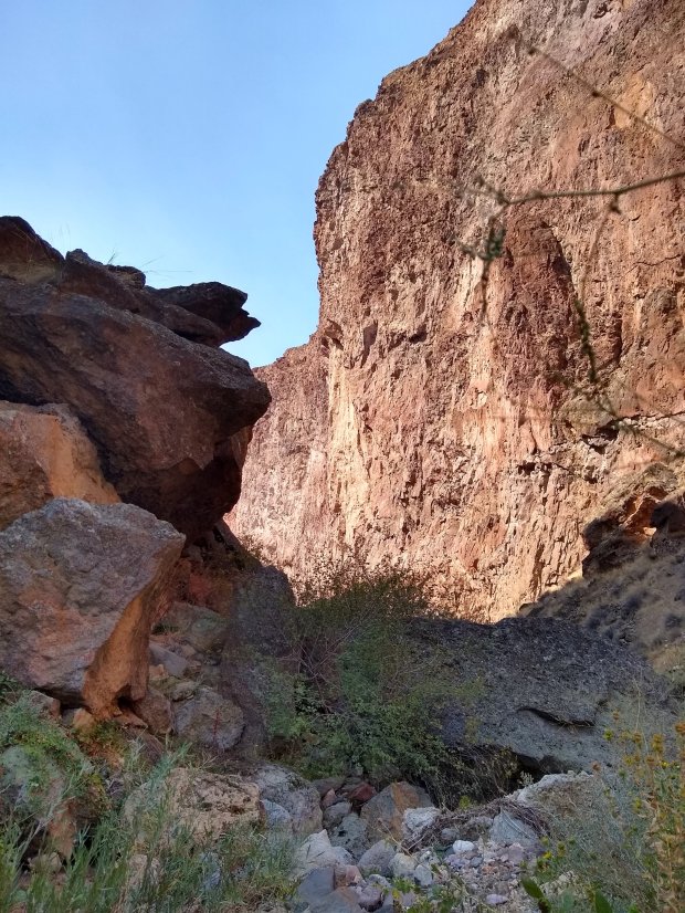 As we walked into Three Fingers Gulch to find water, the rock walls soared 500 feet above us and the sweet descending trill of canyon wren song welcomed us. Red walls towering above of us, trippy lava rock under foot, groves of willows and serviceberry, and distant patches of poison ivy. Only halfway through the day and we were starting to understand why the Owyhee canyon country is so revered.