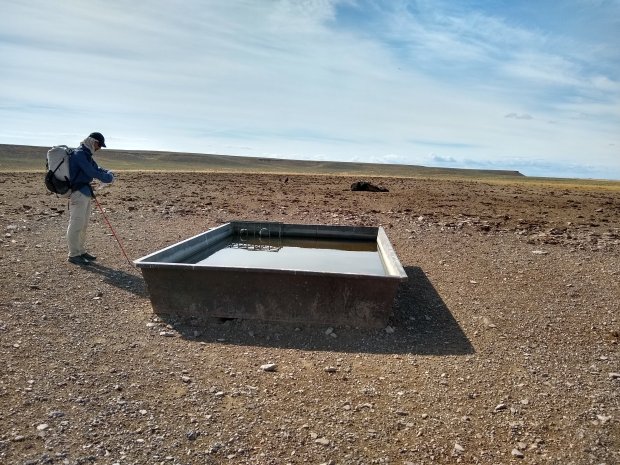 Crossing a land of cheatgrass and pepperweed near a cattle trough. Photo by Gabriel Deal