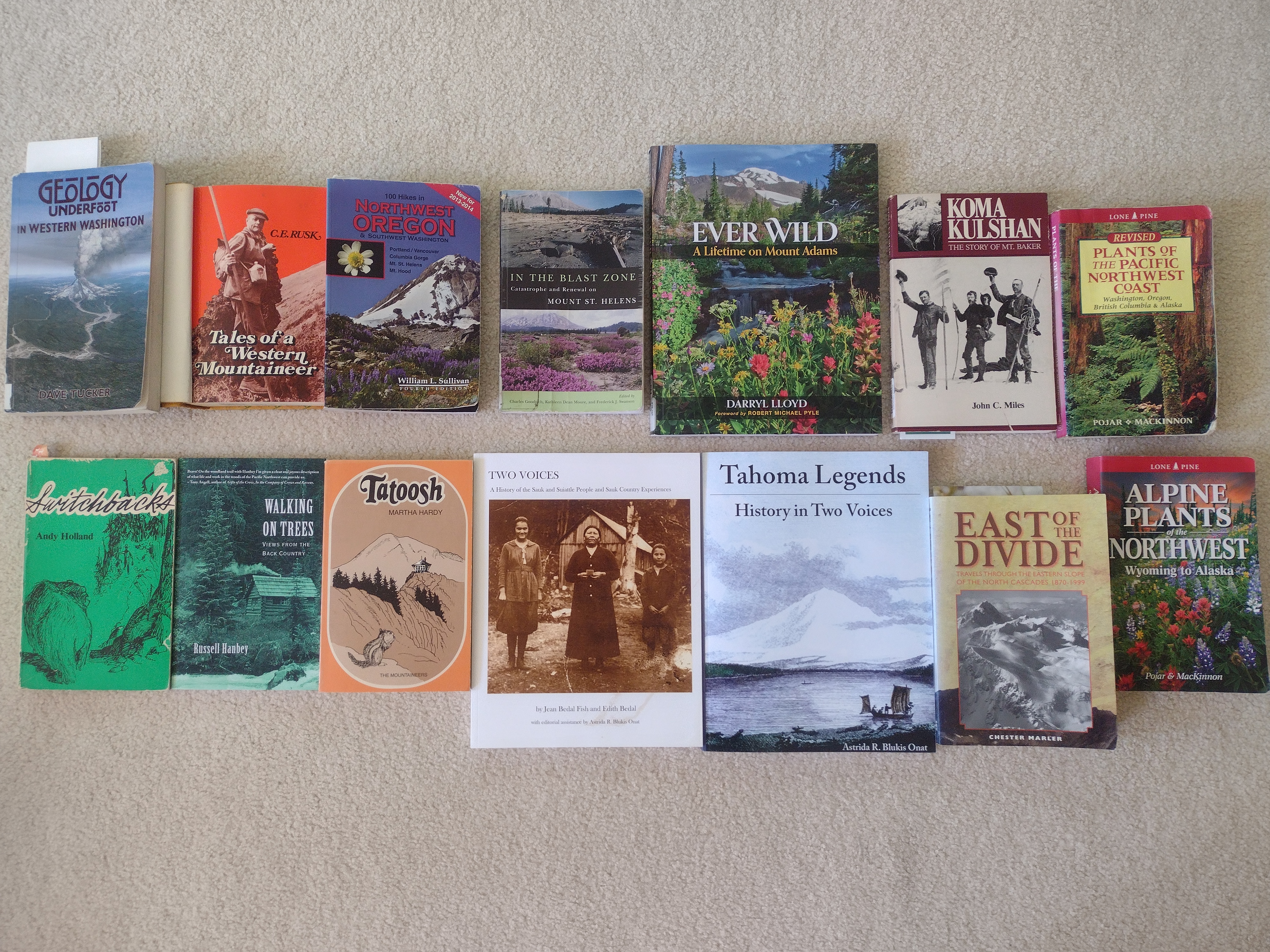 We both grew up in the Portland/Vancouver area with views of Hood, Adams (Pahto), and St. Helens (Loowit) on the eastern skyline. Today we live in Seattle and look often to Baker (Koma Kulshan), Glacier (Dakobed), and Rainier (Tahoma).* When we’re anywhere in the mountains, in town, or even the deserts of central Washington – we’re looking to these high snowy peaks as bearings of direction, indicators of landscape and watershed health, the weather, and our overall sense of place. Oh, they are just pretty too!